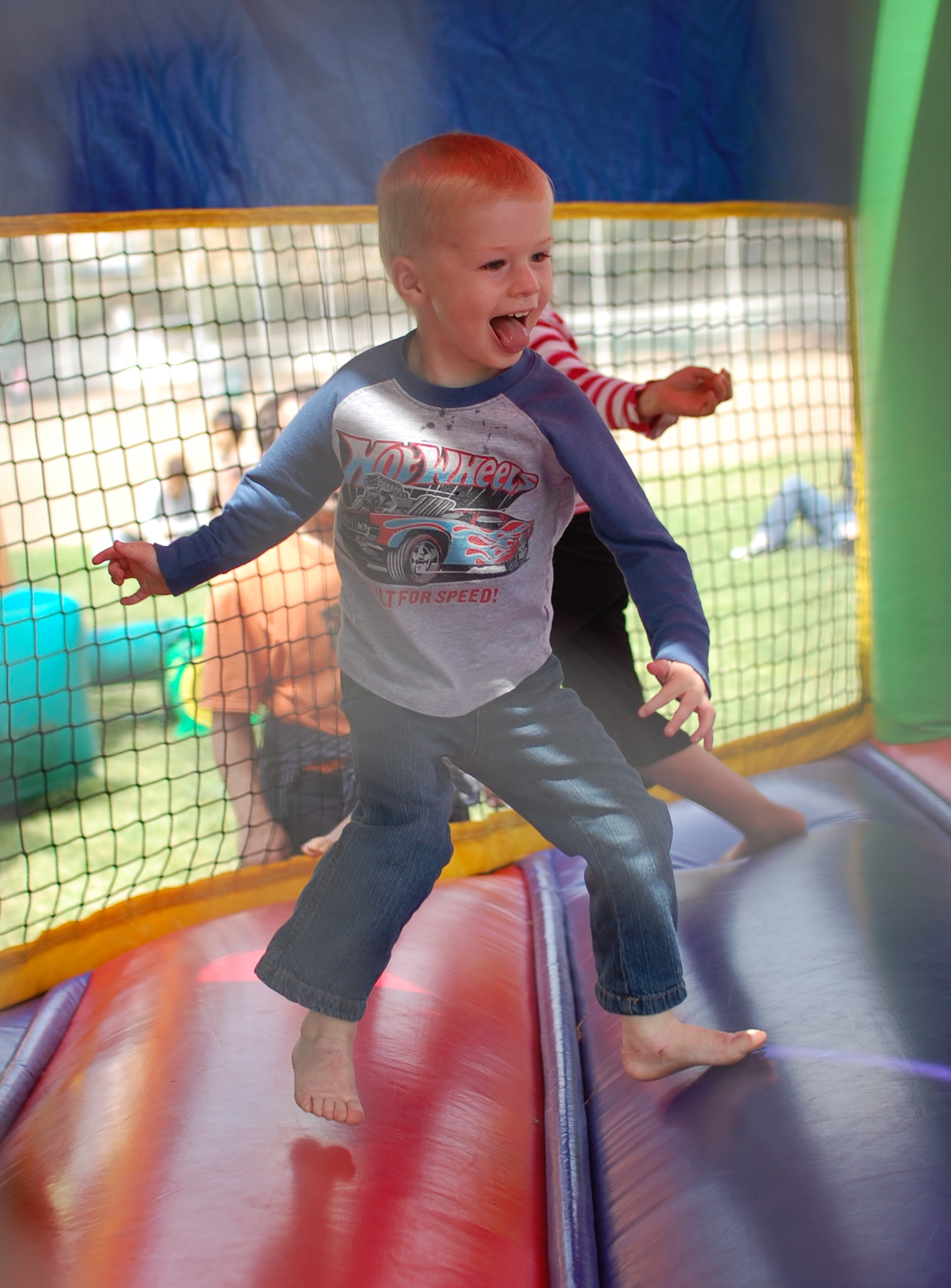 Devin actually waited fairly patiently for his turn in the jumper.