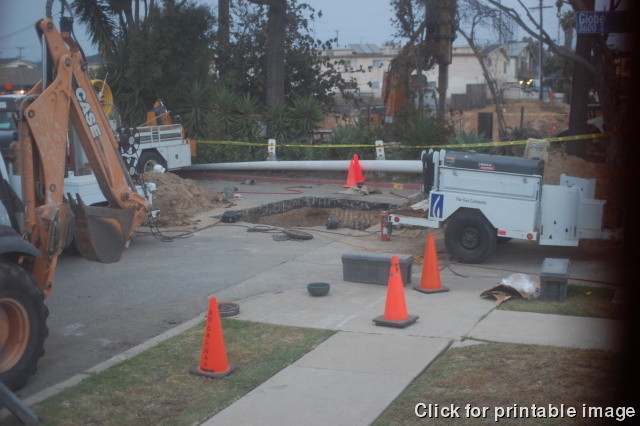 The gas company digs a big whole in our street to fix the pipes.