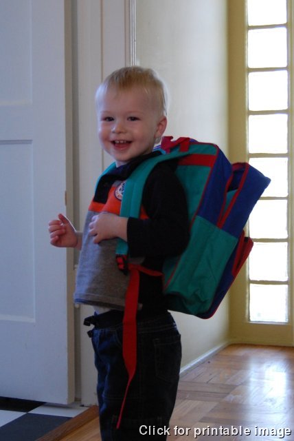 Devin models his new PBS backpack, a gift for his contribution